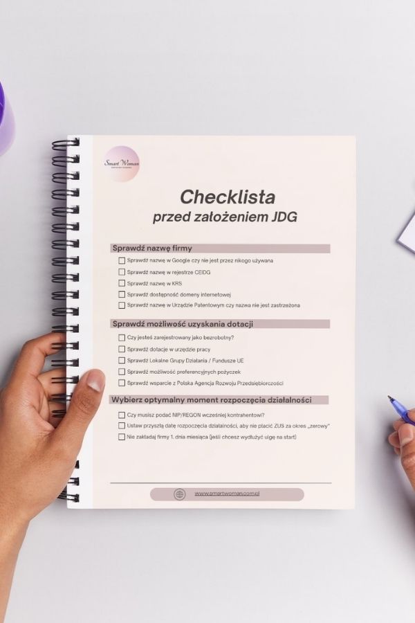 Pobierz darmową checklistę przed założeniem JDG i sprawdź najważniejsze rzeczy zanim zarejestrujesz firmę.