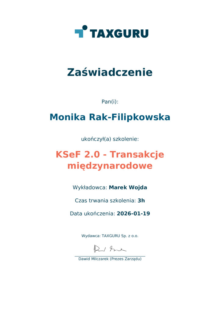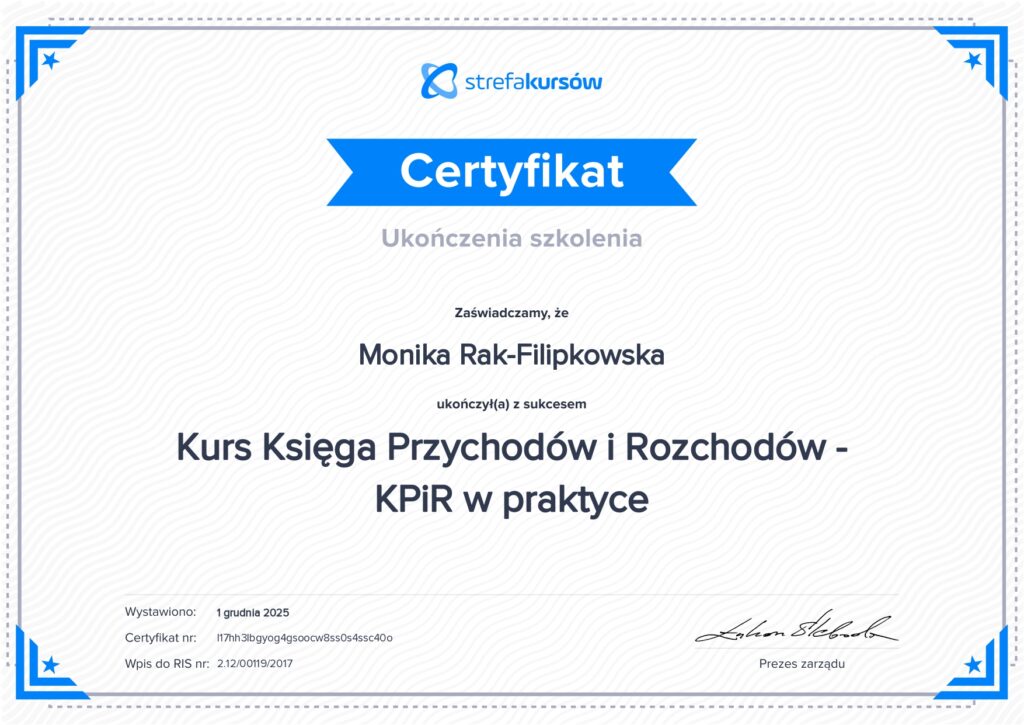 Stale podnoszę swoje kwalifikacje, aby zapewnić pełną zgodność z przepisami oraz aktualne i skuteczne rozwiązania.